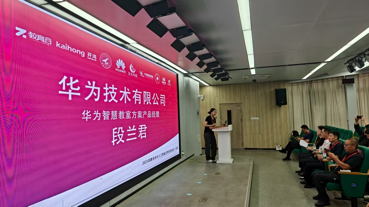 華為技術(shù)華為智慧教室方案產(chǎn)品經(jīng)理段蘭君給參加開(kāi)班儀式的嘉賓和學(xué)員分享了《華為鴻蒙智慧教室解決方案》。