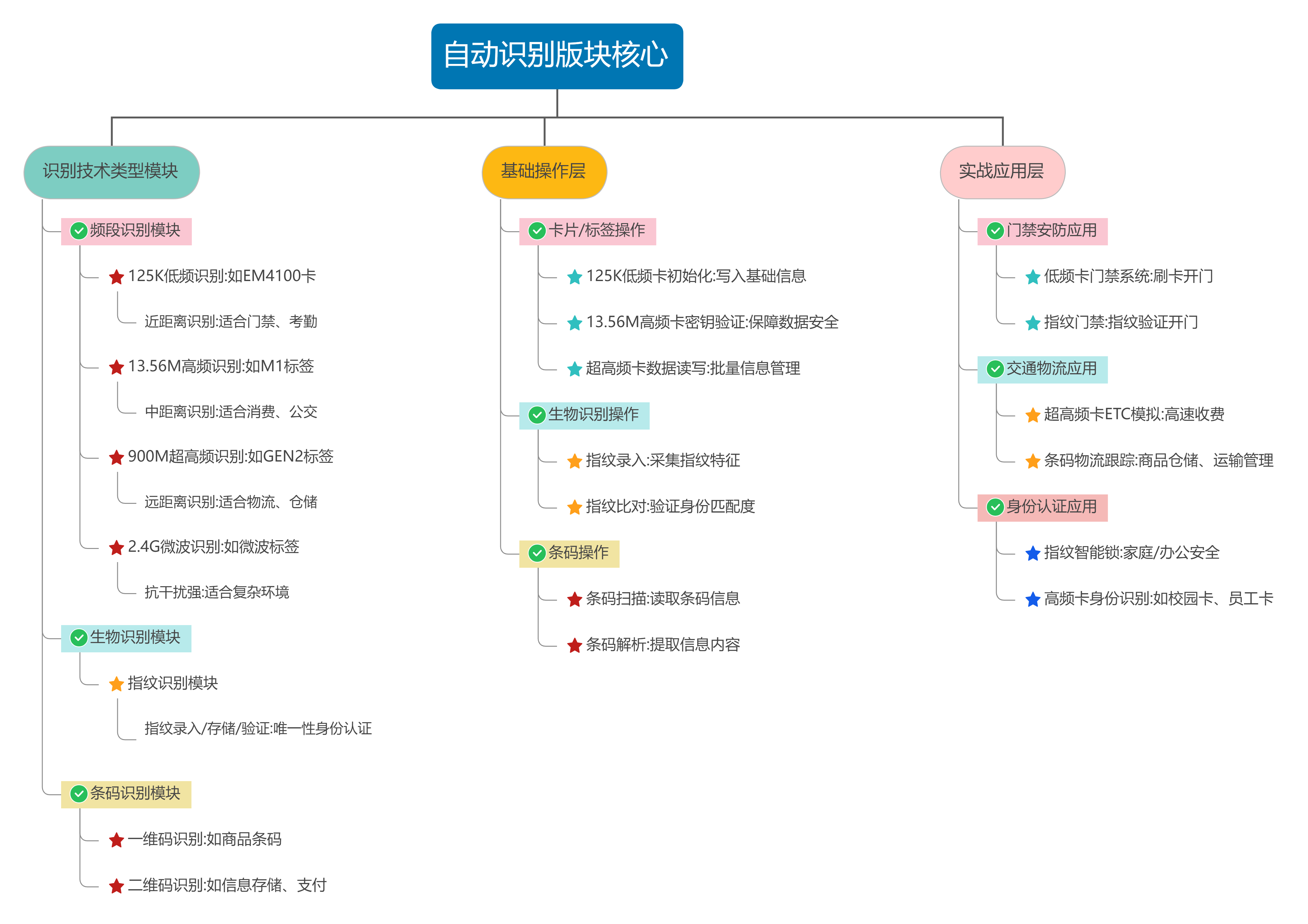 實(shí)驗內容從基礎的卡片讀寫(xiě)(如 125K 低頻卡初始化、13.56M 高頻卡密鑰驗證),到綜合應用(如低頻卡門(mén)禁系統、超高頻卡 ETC 模擬、指紋智能鎖),學(xué)習者可掌握不同頻段識別技術(shù)的原理與應用場(chǎng)景,為 AI 的 “圖像識別”“身份認證” 等功能提供技術(shù)補充。